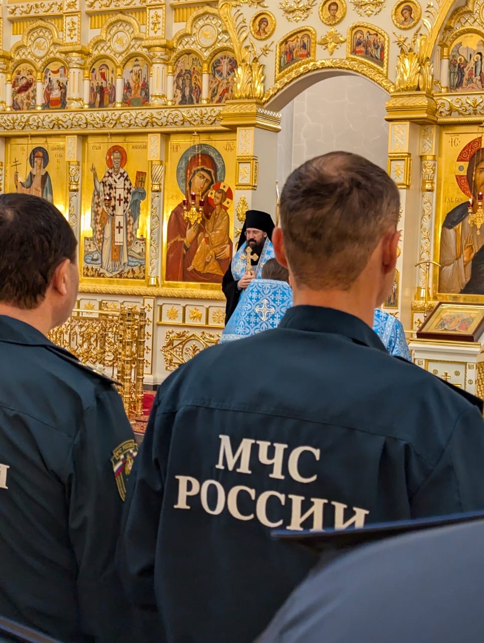 17 сентября 2024 года, в праздник иконы Божией Матери «Неопалимая Купина», в храме великомученицы Варвары в районе Талнах города Норильска епископ Норильский и Туруханский Агафангел совершил благодарственный молебен, в котором приняли участие сотрудники МЧС России.