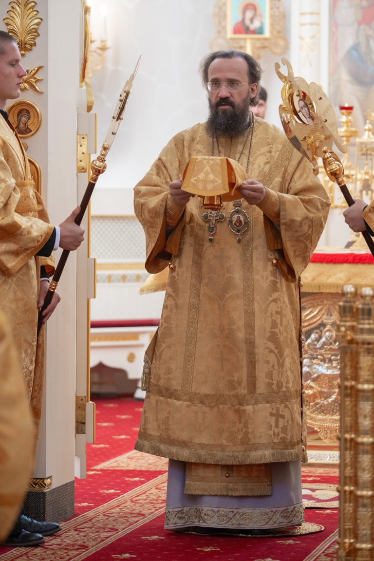 15 сентября 2024 года, в Неделю 12-ю по Пятидесятнице, праздник перенесения мощей благоверных князя Петра и княгини Февронии, Муромских, чудотворцев (переходящее празднование на воскресенье 15 сентября), Преосвященнейший Агафангел, епископ Норильский и Туруханский, совершил Божественную литургию в храме великомученицы Варвары в районе Талнах города Норильска.