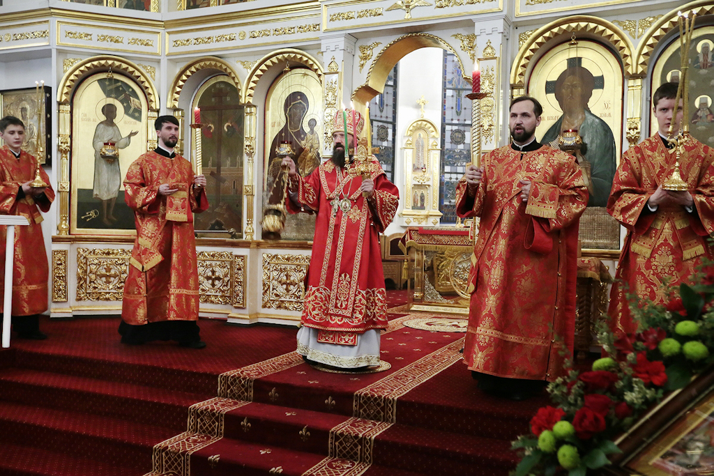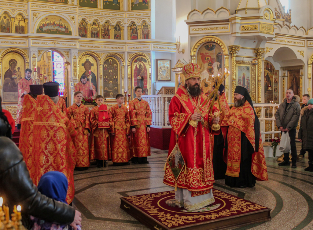 Его Преосвященству сослужили: духовник Норильской епархии протоиерей Владимир Иванов; заведующий канцелярией Норильского епархиального управления, благочинный кафедрального собора иконы Божией Матери «Всех скорбящих Радость» г. Норильска иерей Димитрий Прохоров и духовенство кафедрального собора.