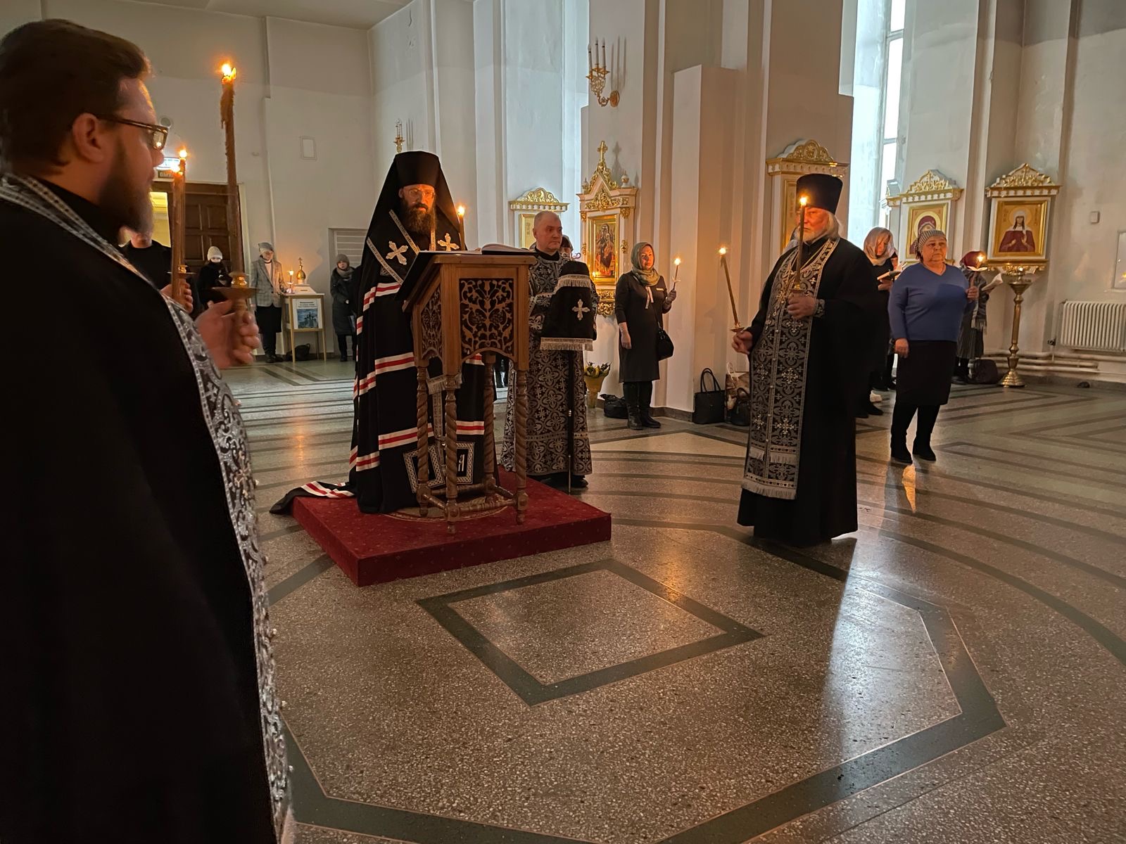 Вечером 18 марта 2024 года, в понедельник первой седмицы Великого поста, Преосвященнейший Агафангел, епископ Норильский и Туруханский, совершил великое повечерие с чтением Великого покаянного канона прп. Андрея Критского в кафедральном соборе иконы Божией Матери «Всех скорбящих Радость» города Норильска.