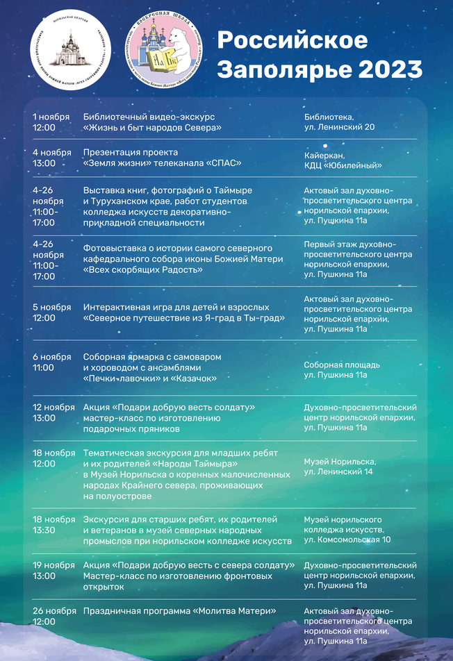 1 ноября 2023 года в городе Норильске открылась ежегодная программа «Российское Заполярье 2023» для семей приходов Норильской епархии и воспитанников воскресных школ города Норильска.
