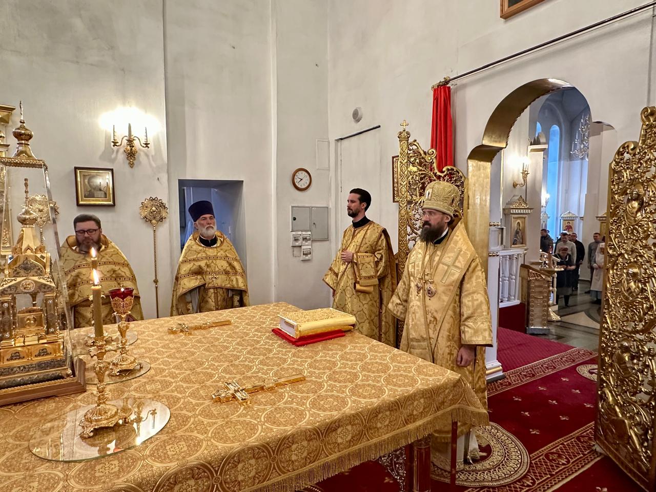 5 октября 2025 года, в Неделю 17-ю по Пятидесятнице, Преосвященнейший Агафангел, епископ Норильский и Туруханский, совершил Божественную литургию в кафедральном соборе иконы Божией Матери «Всех скорбящих Радость» г. Норильска.