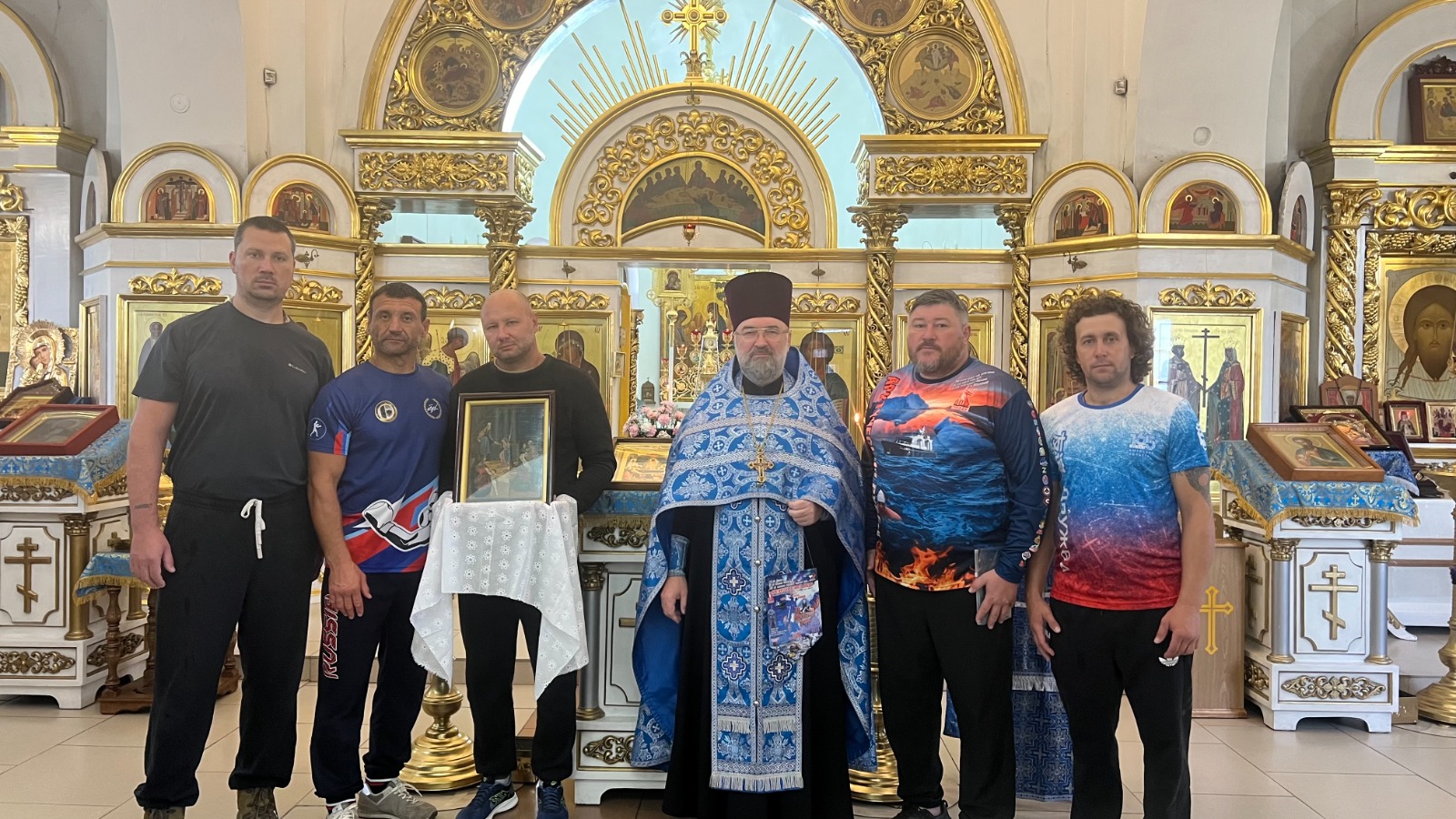 Перед началом морского заплыва благочинный Таймырского округа, настоятель храма Введения во храм Пресвятой Богородицы протоиерей Георгий Ицков совершил молебен в Введенком храме г. Дудинки и окропил святой водой участников мероприятий.