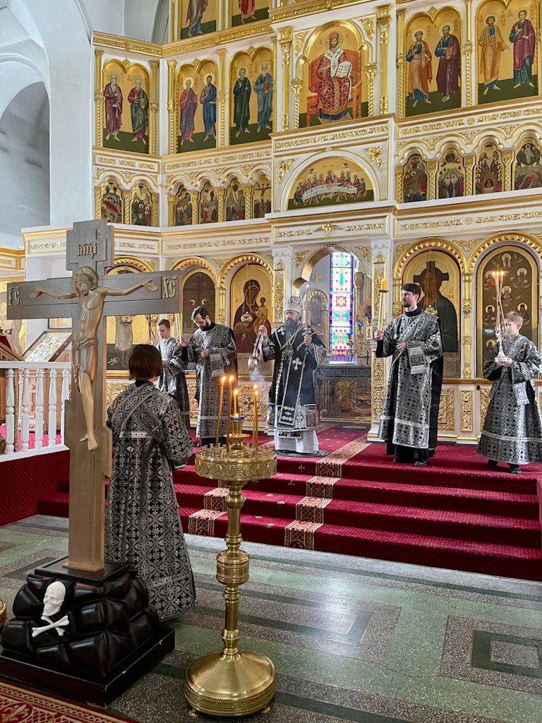 10 апреля 2023 года, в понедельник Страстной седмицы, Преосвященнейший Агафангел, епископ Норильский и Туруханский, совершил Литургию Преждеосвященных Даров в кафедральном соборе иконы Божией Матери «Всех скорбящих Радость» города Норильска.