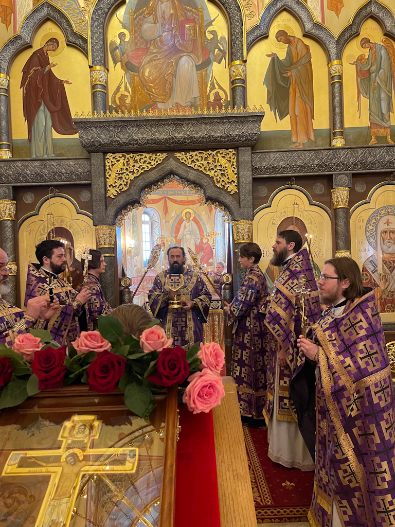 Накануне, 18 марта, епископ Агафангел в сослужении духовенства совершил всенощное бдение с чином выноса Честного и Животворящего Креста Господня в кафедральном соборе иконы Божией Матери «Всех скорбящих Радость» города Норильска.