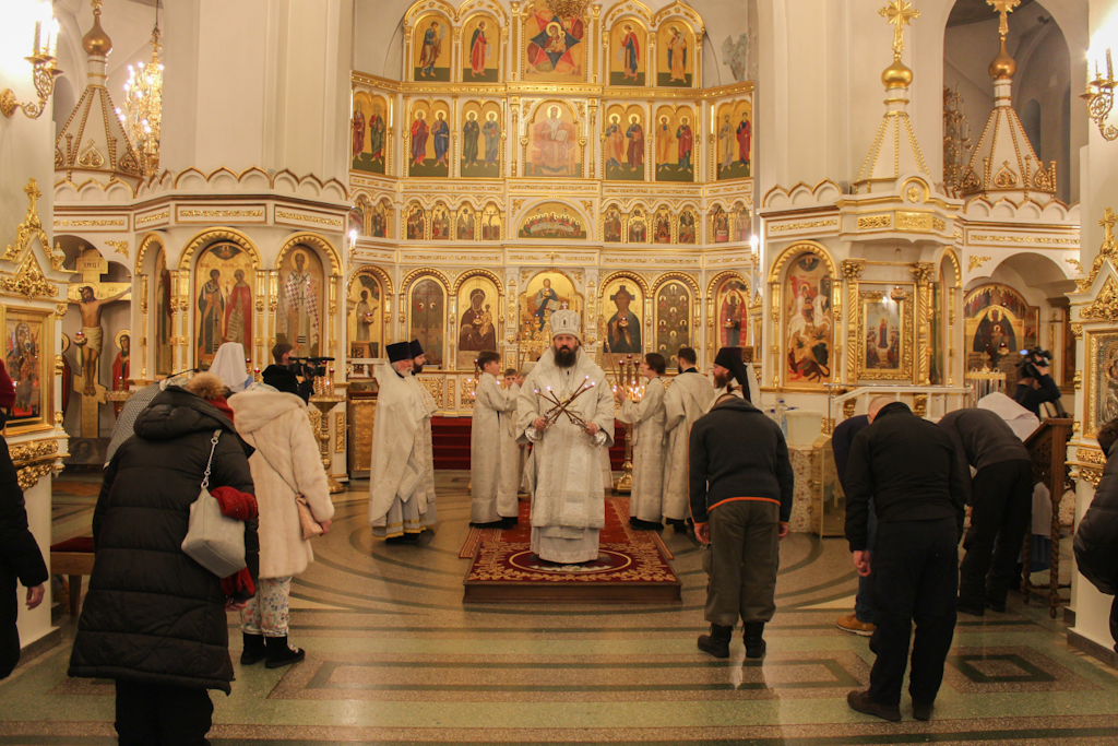 Накануне, 13 января, епископ Агафангел в сослужении духовенства совершил всенощное бдение.