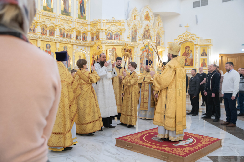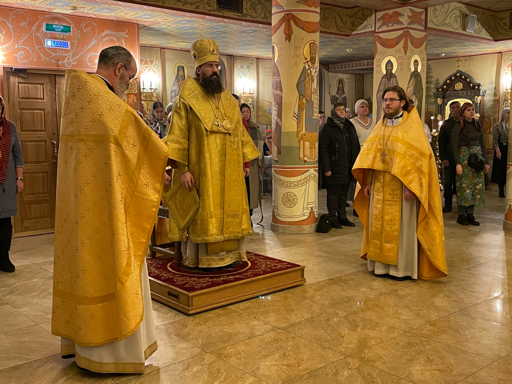 Накануне, 22 октября, епископ Агафангел в сослужении духовенства совершил всенощное бдение в кафедральном соборе иконы Божией Матери «Всех скорбящих Радость» города Норильска.